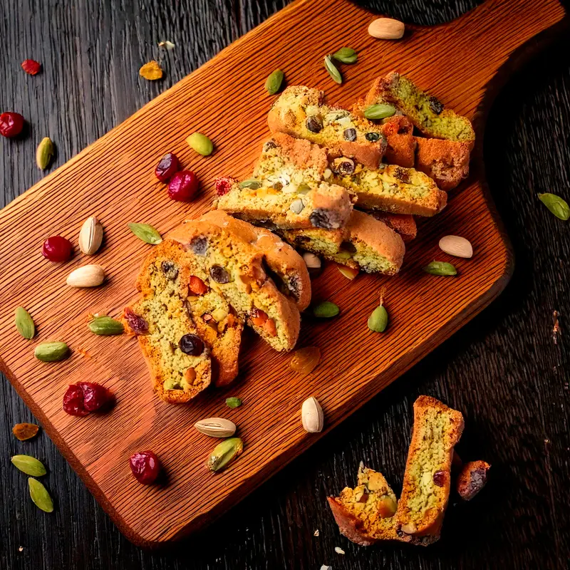Discover the sophisticated crunch of our authentic Italian Biscotti! These twice-baked delights feature a firm, satisfying texture perfect for dunking in coffee, tea, or dessert wine. Studded with toasted almonds and kissed with vanilla and citrus zest, each biscotto delivers complex flavors that unfold with every bite. Our gluten-free version maintains the traditional texture while opening doors for all to enjoy.