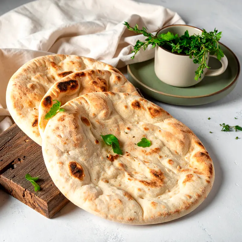 Discover the versatility of our authentic Pita Bread! These tender, pocket-style breads puff beautifully during baking, creating the perfect pouch for your favorite fillings. With a soft, slightly chewy texture and mild, wheaty flavor, each pita serves as both bread and utensil. Whether stuffed with falafel, used for dipping hummus, or torn for scooping, our gluten-free version maintains all the traditional qualities you love.